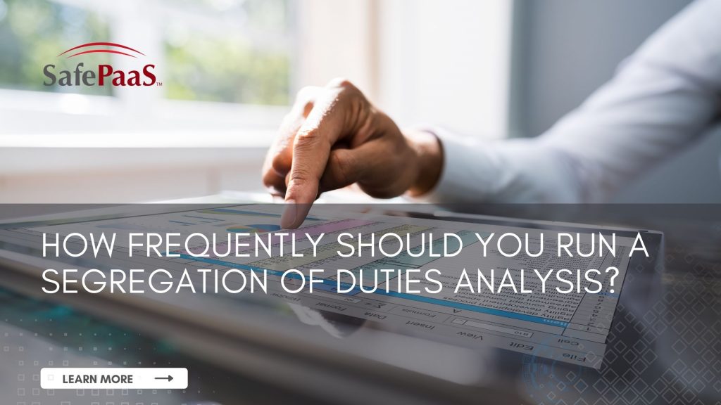 How often should you run a segregation of duties analysis?How frequently should we run a segregation of duties analysis? This is a question our customers often ask and there is no correct answer. The frequency of running a segregation of duties analysis varies based on your company’s situation. At a minimum, […]
